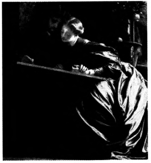 在一座孤零零的房子里,坐着一个青春少年。他时而透过窗子望望镶嵌着繁星的夜空,时而看看手中一位姑娘的画像。画像上的线条和色彩都映在小伙子的脸上,这个世界的秘密以及永恒天国的玄妙都显示在他的面庞,那姑娘的画像在与他窃窃私语,使小伙子的双眼变成了耳朵,能够聆听游荡在房间里的灵魂低语,并把青年的一切化为无数颗爱情照亮、充满思念的心。