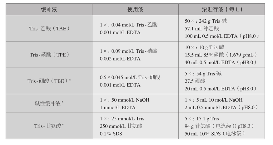 常用的电泳缓冲液