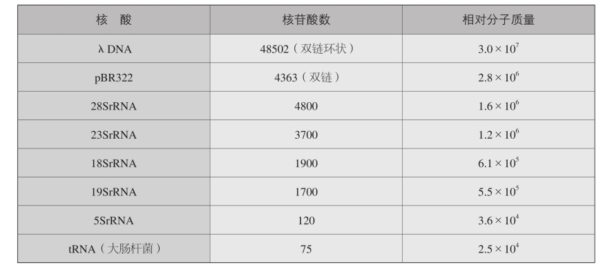2.常用核酸的长度与相对分子质量
