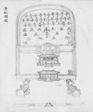 (一)两份葬位图的不同。在国图版《昌瑞山万年统志》和《陵寝易知》上,均绘制有景陵妃园寝陵图,在陵图上也都标注着妃嫔的葬位。但奇怪的是,作为国图版《昌瑞山万年统志》与守陵官员记录的《陵寝易知》上绘制的景陵妃园寝陵图葬位有所不同。国图版《昌瑞山万年统志》上陵图葬位的第三层宝顶主人从左至右是:十八阿哥、成妃、顺懿密妃、平妃、宜妃;第四层是纯裕勤妃、惠妃、□妃、温僖贵妃、□□、慧妃、荣妃,其中“□”表示此字看不清楚,故以此代之。而《陵寝易知》上陵图葬位第四层为:十八阿哥、成妃、襄嫔、宜妃、平妃;第四层七位,为纯裕勤妃、惠妃、温僖贵妃、顺懿密妃、慧妃、荣妃、宣妃。为什么国图版《昌瑞山万年统志》上所绘制的陵图葬位与《陵寝易知》上所绘制的陵图葬位区别这么大呢?还有,国图版《昌瑞山万年统志》上所绘制陵图宝顶的布局,前半部确实是对称均匀的,并且宝顶建在园寝中轴线上;而《陵寝易知》上所绘制的陵图葬位,则是前三层中间略显空白,园寝中轴线上没有建宝顶。