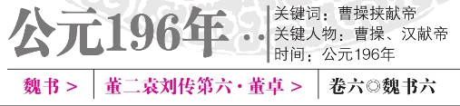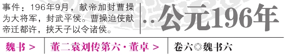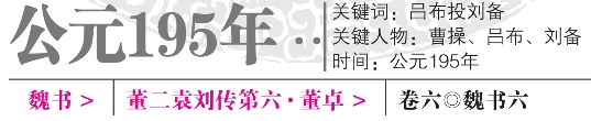 董卓,字仲颖,陇西临洮(今甘肃岷县)人。年少时便非常勇武、爱行侠仗义,当初他还曾交游于羌胡之地,且所结交之人多为各族首领和豪杰之士。及日后董卓年长归居乡里、在田间劳作之时,有当年羌族部落中所结交的旧友来此,董卓定会携其至家中,不惜宰杀耕牛款待宴请。羌人首领对董卓的深情厚意深为感激,回到部落后以牛羊马匹共计几千头馈赠董卓。桓帝末年,作为天水、陇西、安定、北地、上郡、西河六郡的良家子弟,董卓被选入羽林军成为大内侍卫。董卓武功高强,才智过人,其身手之矫健勇猛更是少有人能及,他常常箭袋双背,在飞奔的马上左右驰骋射箭。董卓后来又得以辅佐中郎将张奂而担任军司马,在征讨并州时立有军功,遂被授为郎中。董卓把赏赐的九千匹细绢,全部分发给所辖官兵。几年下来,董卓历次升任广武令、蜀郡北部都尉、西域戊己校尉,后来因军事不利被罢免。但不久他就又被朝廷重新拜为并州刺史、河东太守,后又升任中郎将,却在讨伐黄巾军时因战败而遭罢免抵罪。待韩遂起兵凉州时,董卓又复职,西向抗击韩遂军队。但当他率军行进到望垣硖北部之时,却遭数万羌、胡人等的包围而粮草匮乏欲尽。董卓于是假装筑堤坝拦水捕鱼,实际上拦住河水悄悄撤退,待他的军队都渡过河后,便拆掉水坝,等到羌、胡军队察觉并派兵追来时,河水早深不可渡,而董卓军队已远去。彼时六路兵马齐上陇西,却有五路溃败,唯独董卓携全部人马返还,并驻扎扶风。朝廷便给董卓加官晋爵。拜任前将军,加封乡侯,后又征为并州牧。