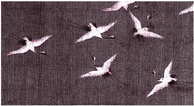 据载,北宋政和二年上元之次夕(即1112年正月十六),都城汴京上空突然云气缭绕,群鹤在宫殿之上飞鸣,盘旋很久不肯离去,还有两只仙鹤在宫殿左右两个高大的鸱吻之上落下。皇城宫人纷纷吃惊地驻足观看。空中仙鹤仿佛理解人意,长鸣如诉。徽宗亲睹此景后甚是兴奋,觉得这是国运兴盛之兆,于是欣然提笔,将所见之景绘于绢素之上,即为《瑞鹤图》。这幅图构图和技法都很精巧:构图上一改传统花鸟画方法,将天空布满飞鹤,一线屋檐同群鹤高翔相互反衬,画家还赋予画面故事情节,这在中国绘画史上属于首例;绘画技法也甚是精妙,画中群鹤姿态万千,各不相同,鹤身粉画墨写,以生漆点睛,使整幅画洋溢着盎然生机。