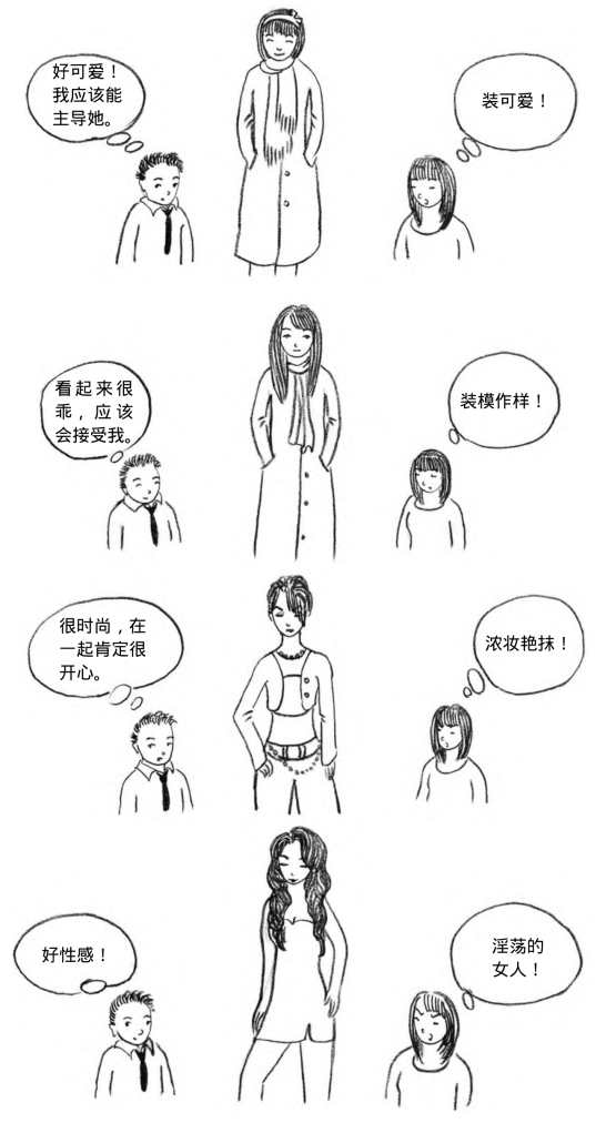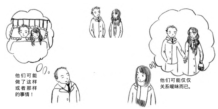 让S始料不及的是,经历了那次之后,K好像对自己有什么不满似的,两个人的关系开始变得疏远起来。更让S无地自容的是,同班一个要好的女生在跟K的好友谈恋爱,S从她口中居然听到了K在朋友圈里散布关于自己“身材不好、过于拘谨”的说法,听到这些,S觉得精神世界都要崩溃了。她去质问K,K却说,这是事实,并提出分手。