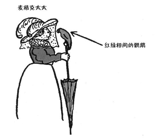 就在今天下午,他又来拜访我了。我请他随意地坐在一张蓝色椅子上,我则坐在他的对面,不禁研究起眼前的这幅画面来。这位先生穿着黄色和少许绿色毛线编织的外套,好像特意要为荒芜的苏格兰平原增添一抹绿意。红色的领带上别着一个镶着紫色水晶的领带夹,脚下穿着紫色的袜子,整体看上去就像是一幅油画。你这位优秀的苏格兰医生的品位可见并不怎么样,所以,我想他对我们孤儿院在装饰和陈设方面也难有好的意见。