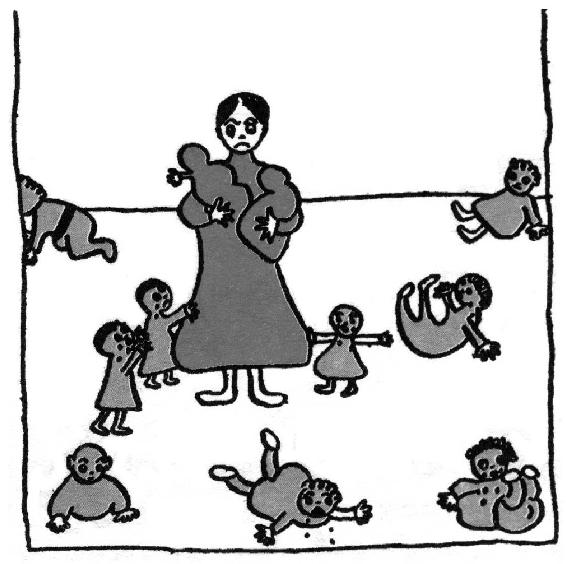 “她想赶我们出去!”我听见旁边的一个小男孩一边使劲儿地挤进一件过小的外套,一边嘀嘀咕咕地抱怨道。