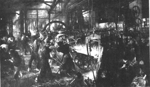 工业革命初期的英国工厂。十九世纪,随着各国先后开始或者完成工业革命,一个新的阶级——工人阶级产生了,这为社会主义从空想社会主义到马克思主义的转变,提供了条件