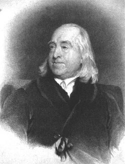 英国激进主义者的公认领袖是杰里米·边沁。边沁生于1748年,但是直到60岁时,他才成了激进主义者。尽管他写就了很多著作,但除了因朋友善意盗窃而发表的之外,他再也没有发表过任何著作。边沁原本只对法学感兴趣,但由于法学的理论,他又对伦理学和政治学产生了兴趣。