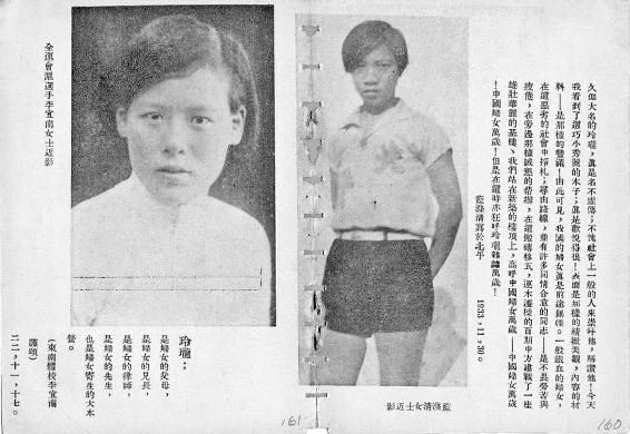 当中国女运动员留短发,穿T恤、短裤的形象在流行杂志中传播时,健美作为新的审美观念,与当时着高跟鞋、旗袍和烫发的苗条美人所代表的都市时尚标准形成对比。囿于相互对立的地区成见,《玲珑》称黑皮肤、高个子、身体强壮的山东“女同胞”是“亚马逊平原的娘子军”、令人倾慕的健美理想代表。它号召上海风格的“摩登女郎”向山东姑娘学习,甩掉高跟鞋,洗尽铅华,奔向运动场(46) 。尽管上海运动队在各种运动会上表现突出,但上海的“脸色苍白的摩登女郎”和“名媛”被看作“林黛玉式的病态美人”。林黛玉是18世纪小说《红楼梦》中患肺结核的抑郁女主角,她美丽的基础是病弱。