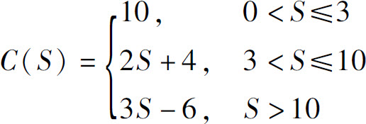 分段函数在实际问题中也是经常出现的.例如,某市出租车按如下规定收费:当行驶里程不超过3 km时,一律收起步费10元;当行驶里程超过3 km时,除起步费外,对超过3 km且不超过10 km的部分,按2元/km计费,对超过10 km的部分,按3元/km计费.则车费C与行驶里程S之间的函数关系为