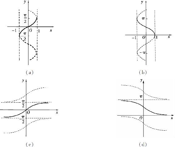 反余切函数y=arccot x是y=cot x,x∈(0,π)的反函数,其定义域为(-∞,+∞),值域为(0,π),如图1.9(d)所示.