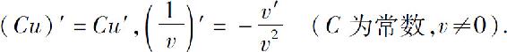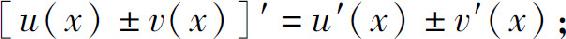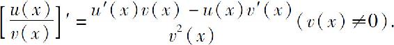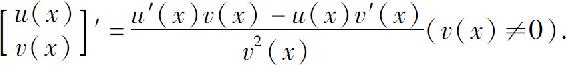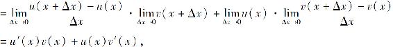 定理1 如果函数u(x)和v(x)在点x可导,则它们的和、差、积、商(分母为零的点除外)在点x可导,并且