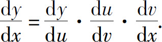 链式法则可以推广到多个中间变量的情形.例如,如果y=f(u),u=φ(v),v=ψ(x)都可导,则复合函数y=f(φ(ψ(x)))可导,并且