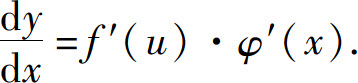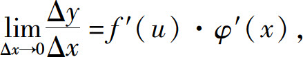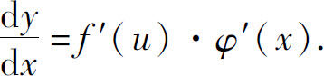 定理3 如果u=φ(x)在点x处可导,y=f(u)在对应点u=φ(x)可导,则复合函数y=f[φ(x)]在点x可导,且