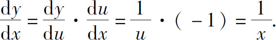 当x<0时,y=ln(-x)可看作y=ln u与u=-x的复合函数,故