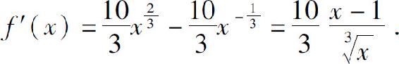 由f′(x)=0,解得x=1;并且当x=0时,f′(x)不存在.这两个点把(-∞,+∞)分成三个部分区间:(-∞,0],[0,1],[1,+∞).