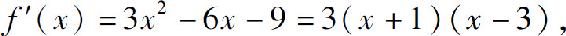 令f′(x)=0,求得驻点x1=-1,x2=3.