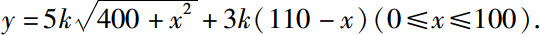 所以x=15为函数在开区间(0,100)内的唯一极小值点,即为最小值点,最小值y(15)=380k.