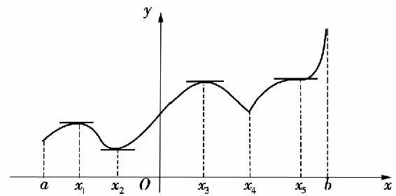 在图3.6中,f(x1),f(x3)是函数f(x)的极大值,f(x2),f(x4)是f(x)的极小值,其中极小值f(x4)大于极大值f(x1).