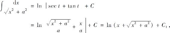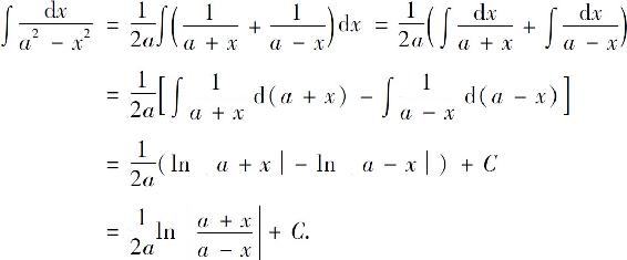 来化去根号.注意到被积函数的定义域是(a,+∞)和(-∞,-a)两个区间,在两个区间内分别求不定积分.