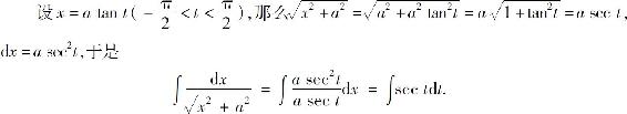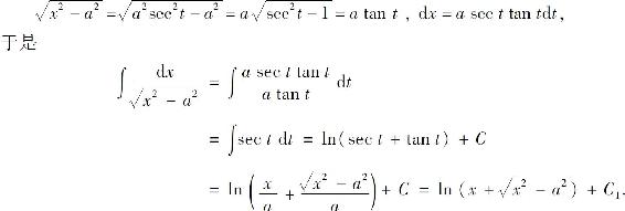 ,则可作变换x=a sec t.具体解题时要分析被积函数的具体情况,灵活采用各种变换与方法.
