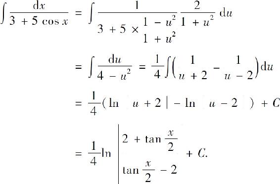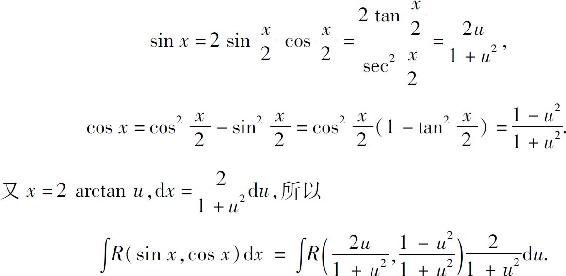可将三角函数有理式的积分转化为有理函数的积分,但某些三角函数有理式的不定积分用其他方法可能更为简便.