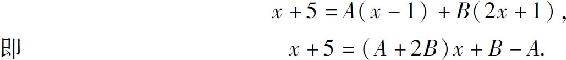 得A=-3;令x=1,得B=2.