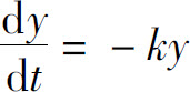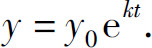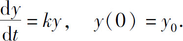 指数变化率 假定量y(人口、放射性元素、货币等)以正比于当前量的速率增加或减少,并知道时刻t=0的量y0,则可以通过解下列初值问题求y.