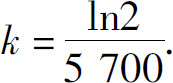 必须指出的是,衰减方程为y=y0e-kt的放射性物质的半衰期(原子核衰减一半需要的时间)仅依赖于衰减常数k.事实上,令