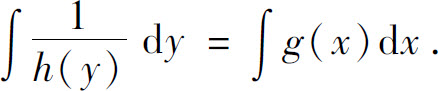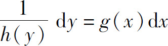 方程y′=f(x,y)是可分离变量的,如果函数f(x,y)可以表示成一个x的函数和一个y的函数的乘积,即微分方程可写成