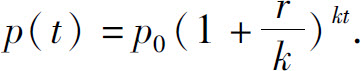 假定以固定的年利率r投资p0元,一年内k次把利息加入账目,则t年后账目资金总额为