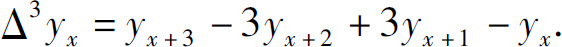 同样,二阶差分的差分Δ(Δ2yx)称为三阶差分,记为Δ3yx,即