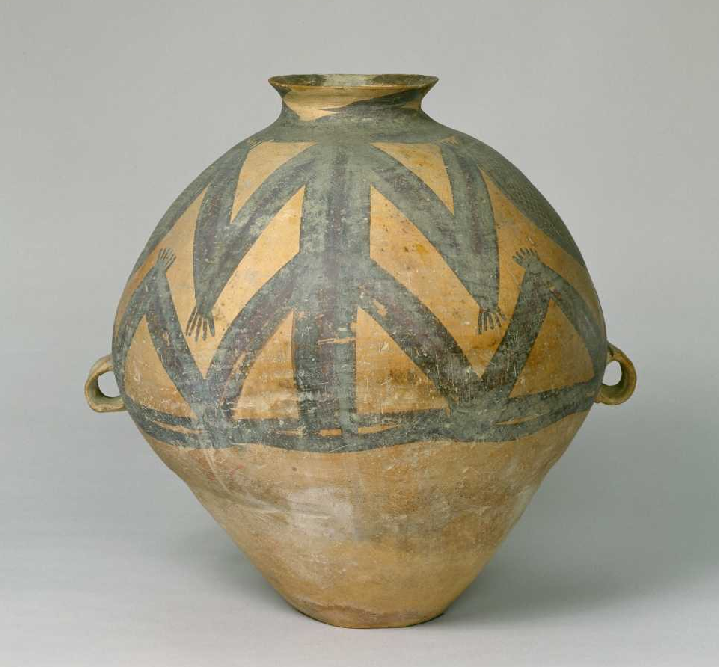 彩陶蛙纹壶,新石器时代马家窑文化马厂类型,高42cm,口径13.1cm。