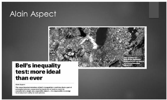 有了判据就可以做实验了,这个实验很著名。它是在日内瓦湖两岸(相距18公里)完成的,实验证明纠缠是存在的,而且破坏了贝尔不等式,这是一个分水岭,大家从此以后不再纠结纠缠的存在性问题。