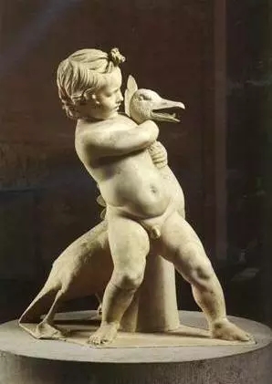 原作青铜,留存至今的这件是罗马复制品。波厄多斯生活在公元前3世纪,正是希腊化风俗性雕塑发展的时代,几乎触及到生活的各方面,从超凡脱俗的神性,开始表达最普遍的人性。特别重视真实地塑造人物形象,注重人的内在精神表现。从这个天真活泼的幼儿抱着有生命的鹅可见雕刻家对生活和人的理解,这是一组活灵活现的儿童生活雕像。雕刻技艺圆满、完美高超。