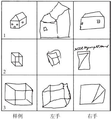 大脑两半球具有惊人的不同之处,我们的最后一个例子采用了放在屏幕后桌子上的塑料字母块。主试要求患者用左手将这些字母块拼成各种单词时,他们很容易地做到了。即使把能拼成特定单词的三四个字母块放在屏幕后面,他们也能用左手依照单词正确地排列字母。然而,完成这一任务后,这些患者却不能说出刚刚拼写的单词。很明显,大脑的左半球在言语上优于右半球(这在一些左利手人中可能正好相反)。那么,大脑右半球有什么优势技能呢?斯佩里和加扎尼加在这一早期研究中发现,在涉及空间关系和形状的视觉任务中,左手的成绩更好(即使这些患者都是右利手)。就像在图1—3中看到的,复制三维图画(用铅笔在屏幕后复制图画),左手的成绩更好。