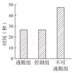 在64次电击的过程中,可逃脱组的狗用于挤压鞍垫并停止电击的时间迅速缩短;而不可逃脱组的挤压鞍垫行为在30次尝试后便完全停止。
