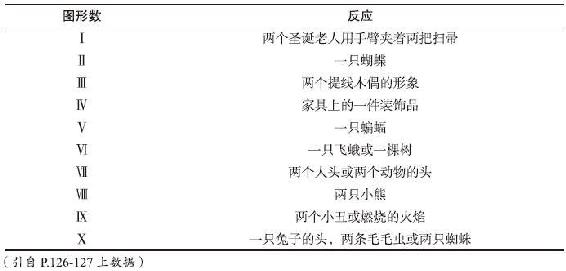 表9—2列出罗夏所报告的对10张墨迹图的典型反应类型。当然,这些反应会因个体或群体的不同而发生变化。在表中列出的仅是一些例子。