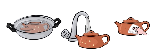 一把新的紫砂壶要先开壶,用清水煮开晾干;在使用过程中,尽量一把壶只泡一种茶;使用完茶壶后要及时用清水清洗干净并晾干水分,放在干燥通风又无异味处阴干;使用过程中和使用后经常用干净的细棉布或其它柔细的布擦拭壶身,防止茶汤茶渍长时间停留在壶身形成茶垢。