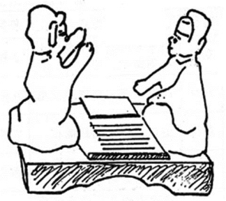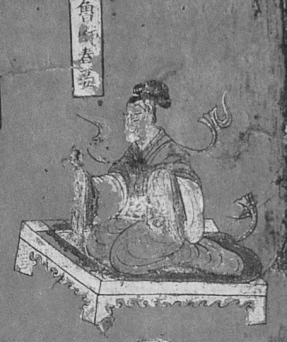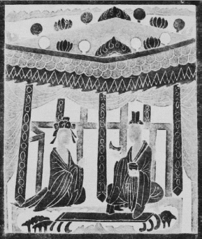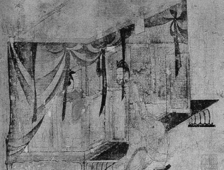 (3)南北朝家具沿着中外结合的道路前进,尤其借外来宗教势力发生影响。屏风与榻结合成为有围子的床榻,还出现带四柱加帷帐的床榻,如《女史箴图》、北魏屏风漆画《列女古贤图》中出现的形式,这既是对“古风”时期屏风与席组合方式的继承和发展,也成为后世床榻的雏形(图2-13)。魏晋时期出现的三足凭几式样,是后世椅类圈背的源头,也是后世坐具腰背支撑设计的引导。还有很关键的就是外来宗教带来的弓形搭脑靠背椅、墩、方座等,使坐的方式和坐具都开始产生质的转化(图2-14)。