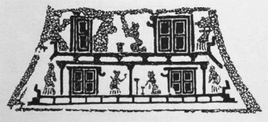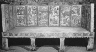 “壸门”在唐代上层建筑和家具中应用比较普遍,成为最主流的样式,但民间运用的程度却很可能不高(图2-16、图2-17)。流传至今的唐代家具形象多为上层贵族生活用品,具有证据上的有限性。民间保留席坐起居方式直到宋初还有非常确凿的证据,所以笔者认为不能以这些证据推论唐代社会普遍意义的起居和家具形制。