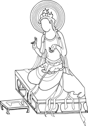 东汉之际传入中国的佛教,在南北朝时已经盛极一时。充分发展的佛教夹带着外来文化,对华夏本土的生活习俗产生极大的冲击,也使宗族地位从信仰上受到动摇。佛教为主的外来宗教(还有火教等外来宗教①)带来的新生活起居方式和高型家具,首先在外族贵族间受到欢迎,然后也逐渐在世俗民间被接受和使用。外来高型家具受汉地造物文明的影响,其结构到外形都发生了渐进的转变,如床榻、墩杌、案几等,都成为文化汇融的载体。这时期的家具受宗教仪式和日常生活两方面需求的激励而发展,宗教礼仪需要的供桌、香案、佛座,生活起居需要的床榻、几案、架类,都有长足的进步。但传统的跪坐起居方式依然为主流,敦煌203窟中有菩萨跪于壸门箱型床榻上的形象,是佛教汉化的一项证据(图2-3)。