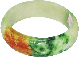 “匀”指色要均匀。翡翠是一种多晶质的矿物集合体,所以其颜色常常达不到十分均匀。根据颜色分布的均匀程度,我们一般可将其分为5个等级:即均匀、较均匀、尚均匀、不均匀和花斑状。当然色愈均匀愈好。但应指出的是,对于一个小的戒面来说,要求其色尽量均匀是可能的,而对于一个较大的雕件来说,通常是无法满足色均匀的要求。这时主要看翠色分布面积的大小,在雕刻构思时能否巧妙地利用色调分布的差异,使其取得画龙点睛的效果。另外,通常人们还把一个雕件(或玉镯)中同时存在翡、翠、地(或春),称为“福禄寿”。这时颜色分布虽然不均匀,但由于被视为是一种吉祥的颜色,所以仍被视为是色好的品种。尤其是当三色各自所占的比例大致相当时,更是难得,价值自然也要看高一成。如果同时具有红、绿、紫、白或红、黄、绿、白四色,则称“福禄寿喜”,其价值自会更高一筹;倘若同时具有红、黄、绿、紫、白五色,称“五福临门”;由于这种情况极其罕见,其价值当然又要高出许多。