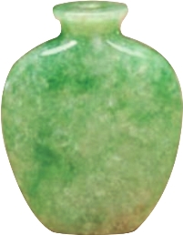 (5)瓷地。是一种结构虽然比较细密,但透明度较差,系近于不透明到不透明的质地,因外观近似瓷器表面,故称。它包括前人所说的细白地、干白地等,它主要构成偏低档的翡翠。所谓“有色无种”的翡翠底质应属此。