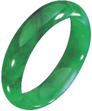 (2)玉地。也是翡翠质地较优的一种,结构致密细腻不亚于玻璃地,但透明度相对较差,半透明为主,也难见有“翠性”,10倍放大镜下仍难分辨其晶粒,其中透明度相对较好的也可具有起荧现象。由于其直观表象近似软玉的外观,故称玉地,它还包括前人所说的蛋清地、芙蓉地等。此类质地也常构成为优质的翡翠。