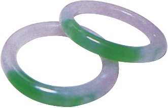 这对芙蓉种手镯虽然翠的面积不大,但底质很好,具亚透明度