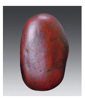 (9)糖玉。我们已经谈到糖玉的糖色是来自后期的铁质渗染。因渗染程度的不同和氧化程度的差异,糖色也可以有深浅,红、褐、棕色的变化,因而有所谓“秋梨色”“虎皮色”“枣皮色”等的称呼。糖色还主要出现在白玉、青白玉和青玉中,并大多表现在仔料和半山半水料的表皮(有些山料的早期裂隙中也可能出现糖色)。所以,糖玉实际上不能单独划分为一个玉种,而是以从属的地位附着于其他玉种中。另外由于有没有糖色常成为一些人鉴别软玉料究竟是否是仔料或山料的一个依据,因此可以发现有些玉料上的糖色,常是一些人故意伪作的,必须谨加防范。