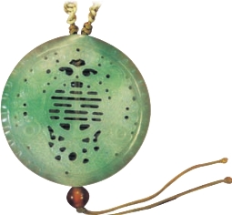 (2)青玉。呈鸭蛋青色,并可有深浅之分,深者常闪绿。青玉从物质组成上,多为含微量铁的透闪石,故青玉的相对密度会比白玉稍大一些,达2.98,硬度则稍低为6.5。