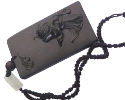 (7)墨玉。呈灰黑-黑色。色大多不均匀,有的黑色呈团、成片、成带分布,有的则有深浅灰黑的不均匀变化,而以纯黑均匀者为佳。我国新疆和田的喀拉喀什河,就以盛产墨玉而著称。这里的墨玉在物质组成上以含有较多的分散分布的石墨质点为特征,故其相对密度常明显偏低,有的只有2.66,与软玉的标准相对密度2.96相差达0.3。硬度也大多偏低,只有6左右。澳大利亚的科威尔也是墨玉的主要产地。不过,在那里墨玉的黑色与铁含量的增加有关,其中优质的墨玉是当地价值最高的软玉品种。