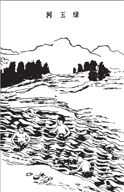 ① 和田矿区。是历代以来最重要的软玉产区,相传早在四五千年前的虞舜时期,居住在昆仑山一带的西王母就曾到中原献“白环玉玦”。先秦古书《穆天子传》则记有:当年周穆王西出巡狩,登昆仑山,称此山“唯天下之良山,瑶玉(指优质玉)之所在”,并曾“攻其玉石,取玉万只”而归。《史记·大宛记》也载有:“汉使穷河源,出于阗,其山多玉石”。可见这里的玉石在几千年前就已闻名于世。据近代勘测,玉石的原生矿,分布于4 000多米以上的高山上。这里地处雪线以上,山高路险,故原生矿(即山料)的开采十分不易。宋代成书的《太平御览》中记曰:“取玉最难,越三江五湖至昆仑之山,千人往,百人返,百人往,十人返”,可见采玉之艰难。因此旧时人们主要开采的是被冰川剥蚀下来的半山半水料和水料。这些被剥离下来的料石,主要沿喀拉喀什河(也叫乌玉河,喀什在维吾尔语中就是玉的意思)和玉龙喀什河(也叫白玉河)的河谷绵延分布。每年夏天,昆仑山上冰雪消融,河水暴涨,滚滚洪水裹挟着大量的玉石奔腾而下,便为两河河谷带来了丰富的矿源。待到秋冬时节,昆仑山上重新封冻,河水剧减,人们便开始踏河捞玉。近代,机械技术的利用,已大大改变了这里的采玉方法。一些人急功近利,用挖掘机把一些重要河段几乎兜底翻了个遍,致使一些地方的矿源已几近枯竭。这里产的软玉主要为白玉、青白玉和青玉。著名的羊脂白玉也主要来自这里;另外也产有较多的墨玉(主要来自喀拉喀什河),位于喀拉喀什河畔的墨玉县便以此而得名。