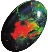 这块欧泊中央有很大的红色彩斑,周围又有橙黄绿蓝紫的变彩相配,无疑是块较优质的欧泊石,可惜它的变彩没有占满整块宝石
